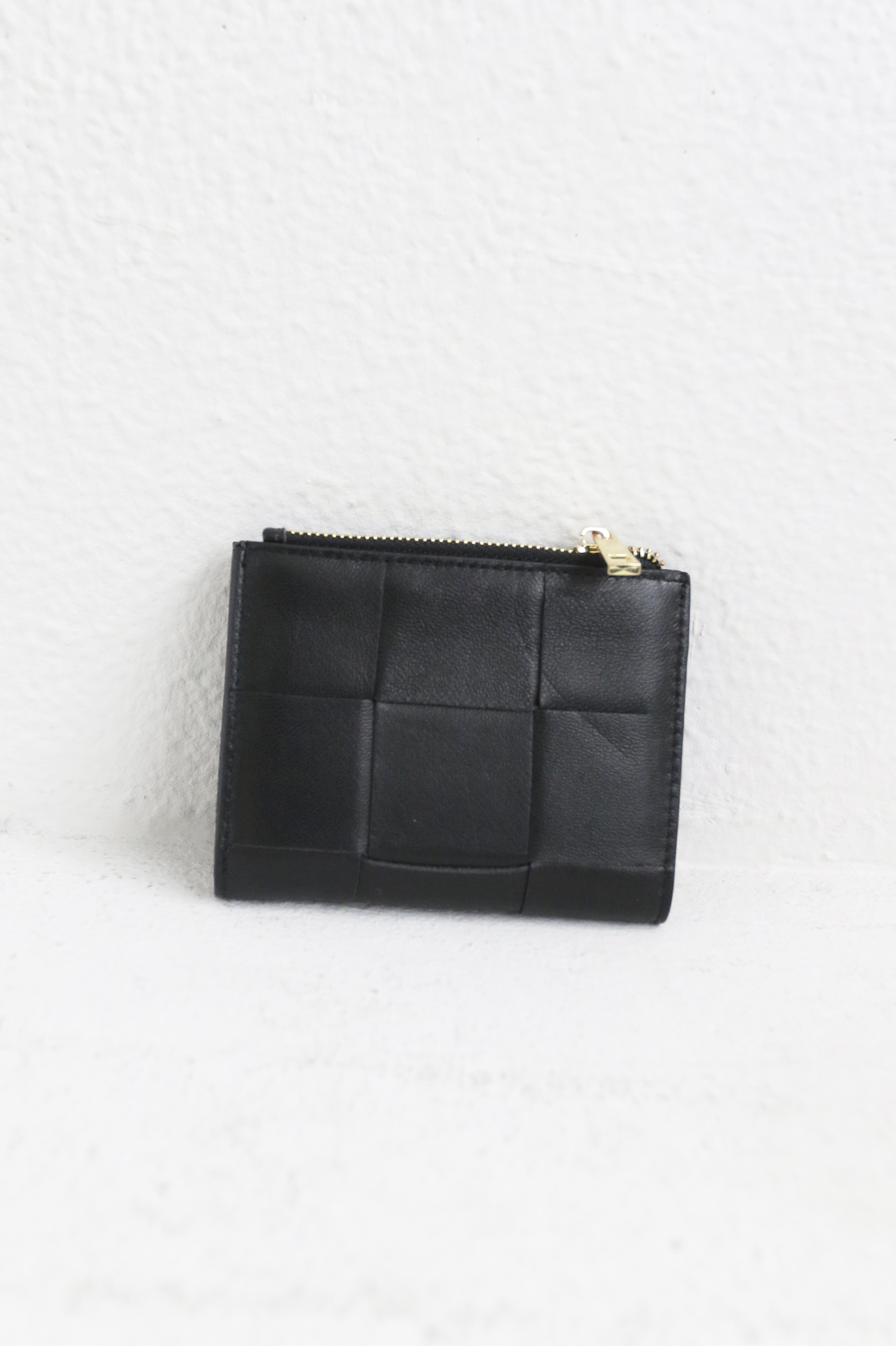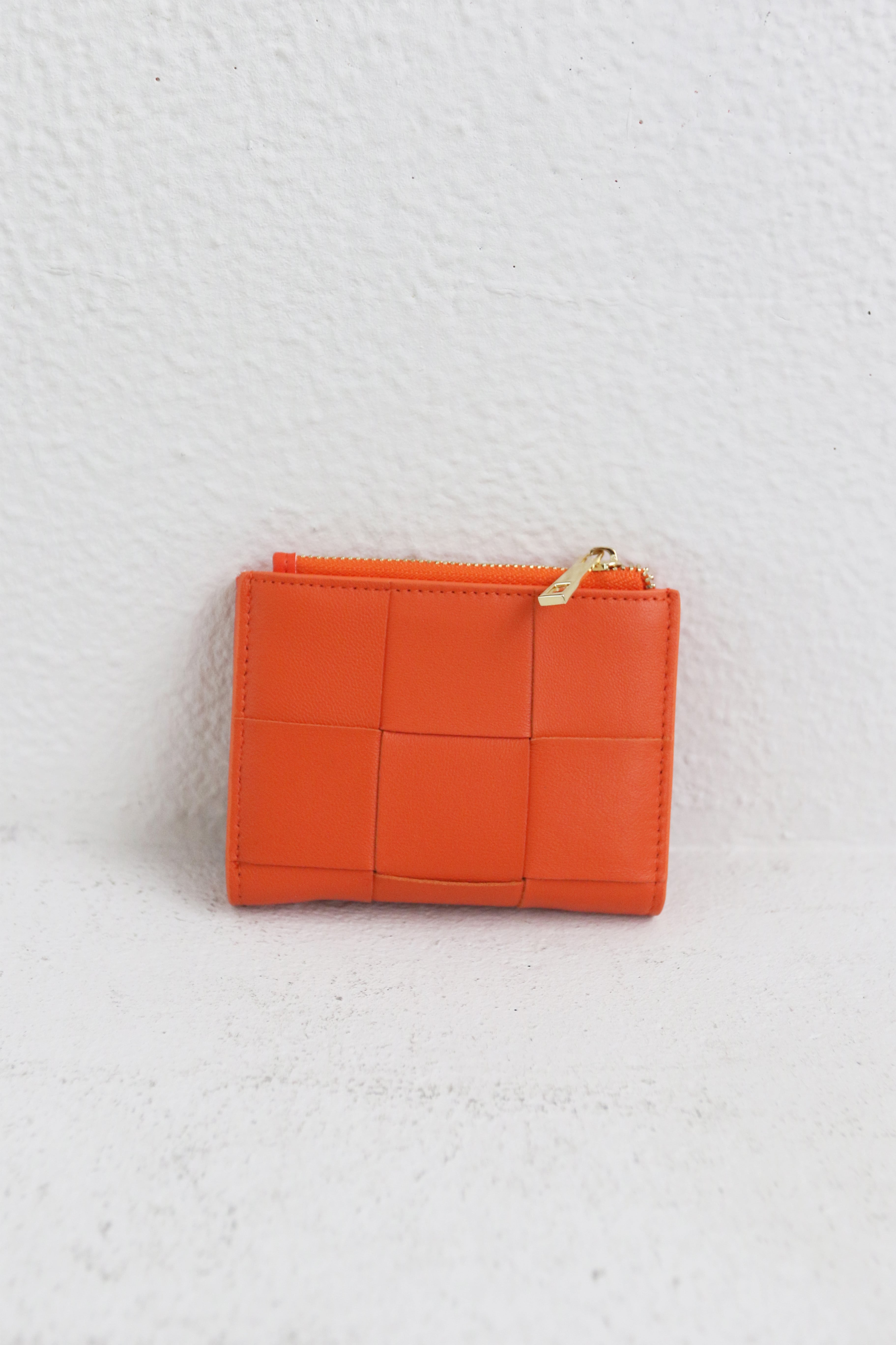 編み込みデザインのラムレザ-を使用したミニウォレットとなります。