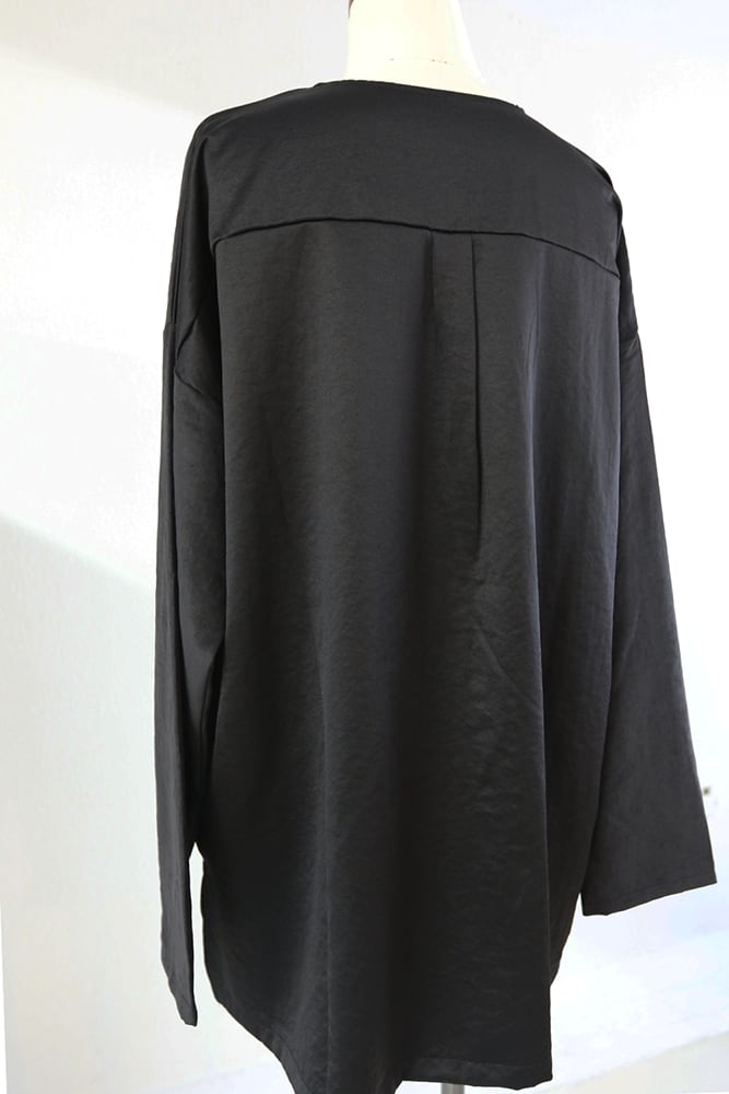 同じ生地を裏表使っています。後身頃はサテンのような光沢のある生地です。