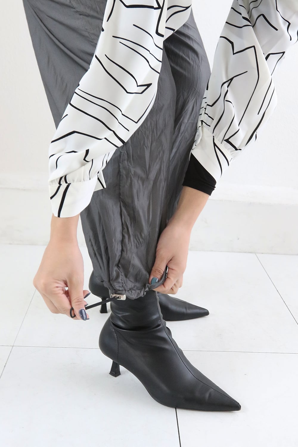 絞らずにストレート感覚で着用したりキュッと絞って足元をスッキリ見せたりと、スタイリングに合わせてアレンジできます。