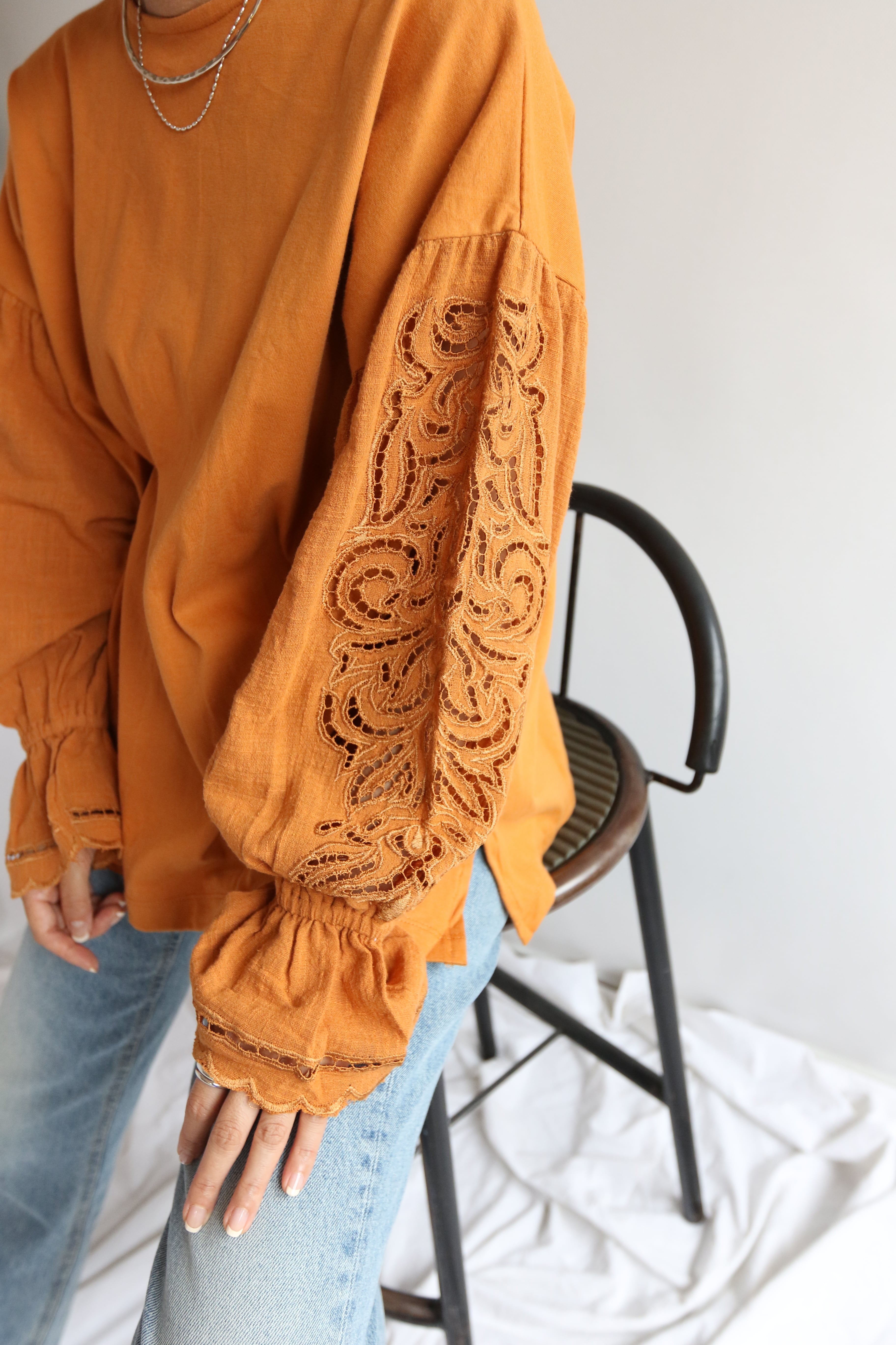 《 カットワークバルーンスリーブトップス》